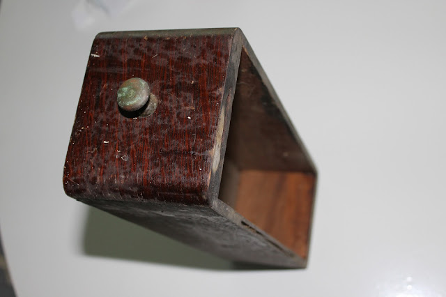 This week's DIY is another antique transformation. It's amazing what a little Orange Glo and new hardware can do to an old sewing machine drawer. Although I had planned on painting the drawer, once I got it cleaned up, I decided that the modern hardware complemented the distressed wood perfectly!