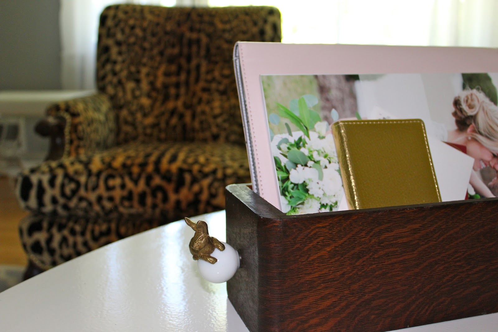 Checkout your local antique shop and get yourself some new hardware. All you have to do is clean it up, drill a hole, attach your hardware and you are done! Whether you re-purpose it as a planter or a mail holder, it will surely make a statement!