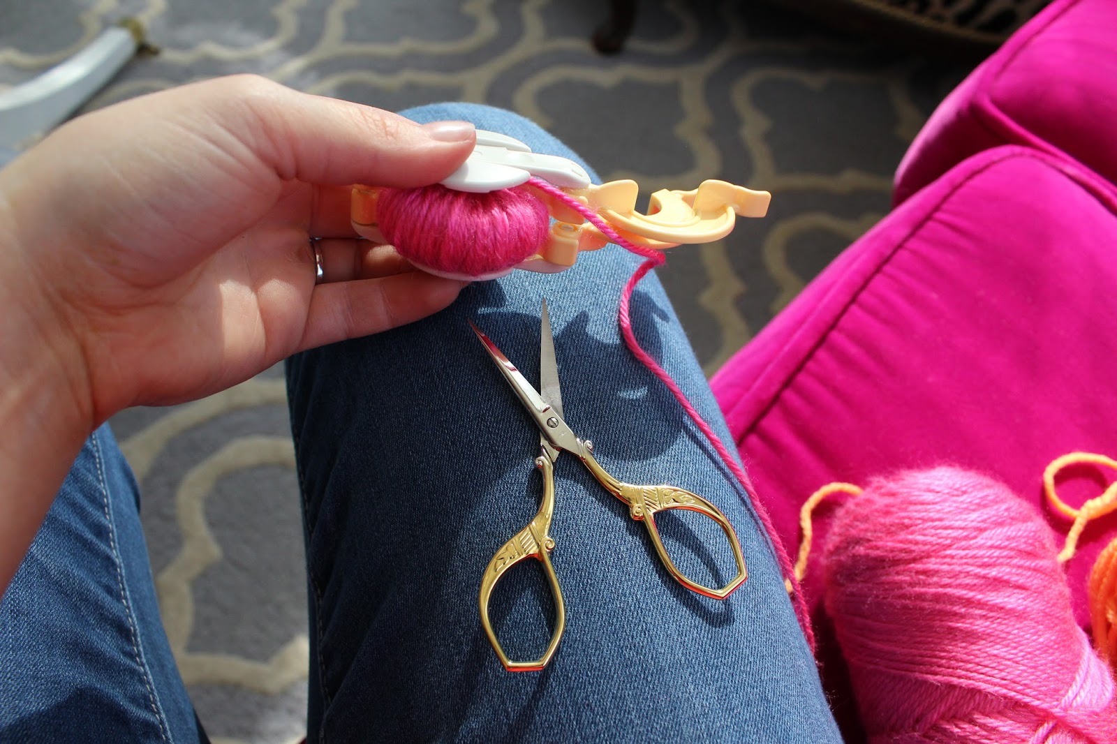 Pre-warning to my friends with upcoming birthdays, you may be receiving a pom-pom pillow. I've been pumping these things out like crazy. Weirdly enough, making pom-poms is somewhat fun and therapeutic.