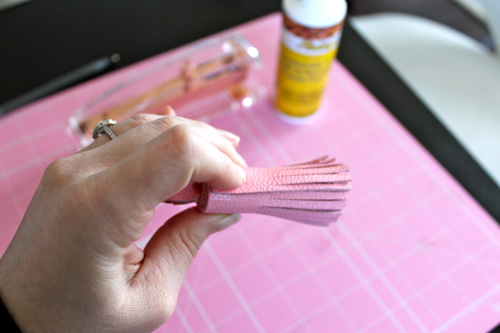 - Apply a small amount of leather cement to the top of the tassel to ensure adhesion.