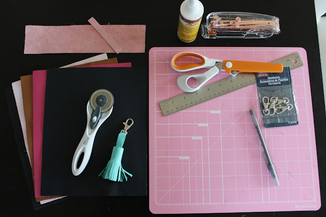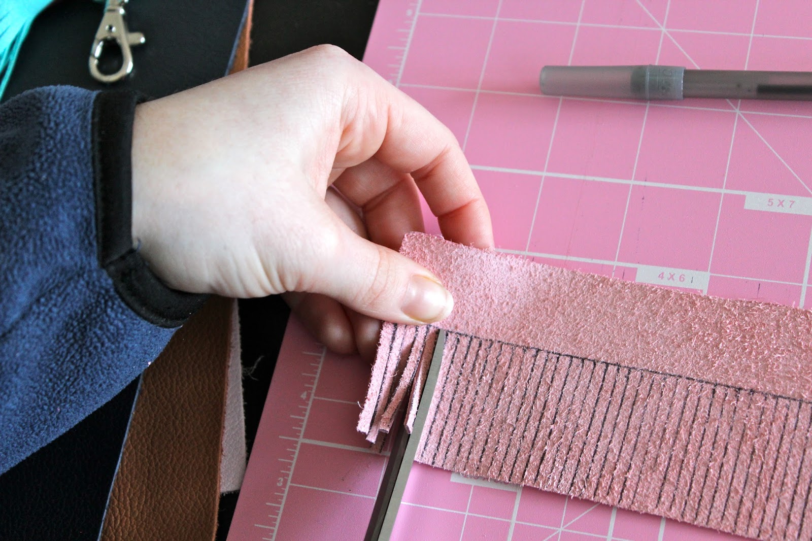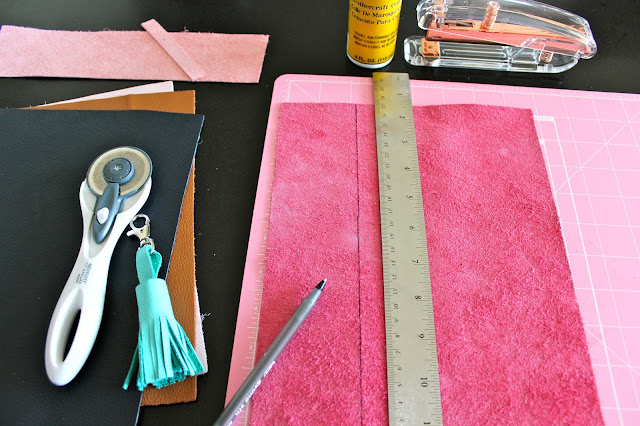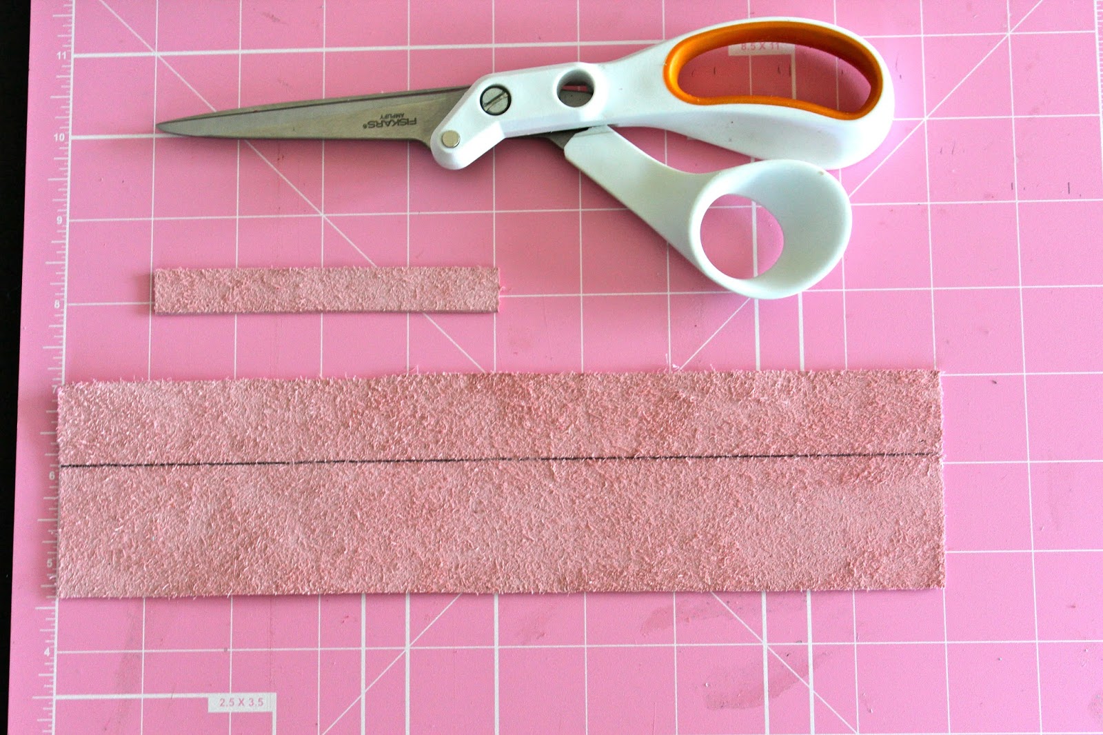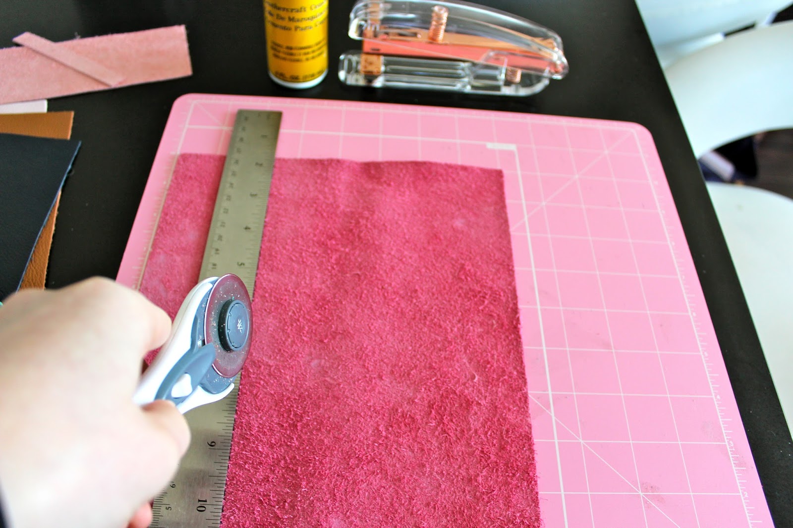 - Measure and cut a .5" x 4" strip of leather with your rotary cutter/scissors.