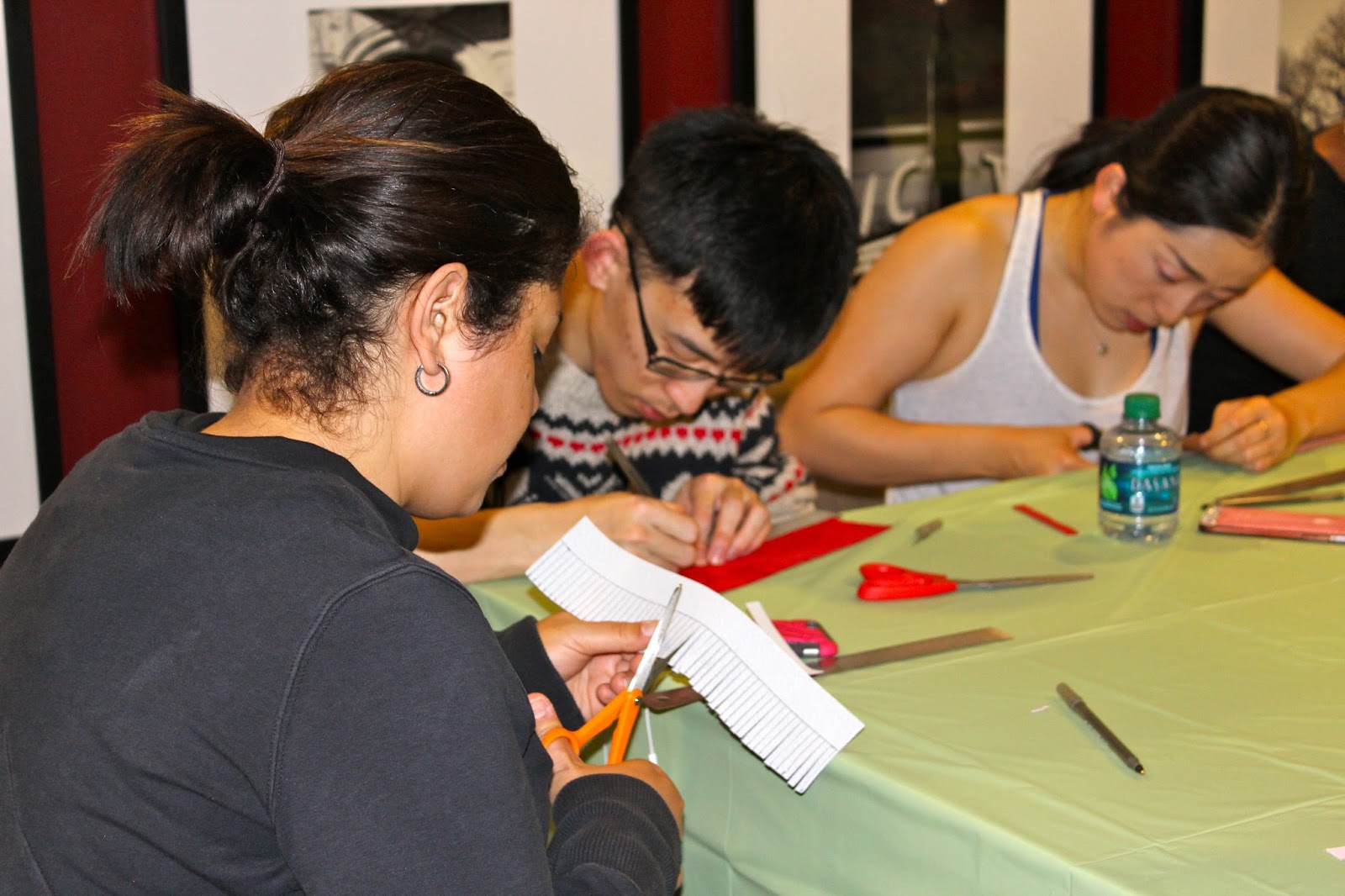 - Use your scissors to cut each fringe piece up to the 1" horizontal line.