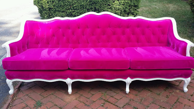 When I decided to move into a one-bedroom last year, I realized that I had absolutely no living room furniture and not a big budget to buy new stuff. With the help of my crafty mother, I decided to refurbish my grandmother's couch and other hand-me-down pieces that I had received from friends or found on my neighbor's curb on trash day. The results? A living room filled with revived antiques, bright velvet, white lacquer and lucite/gold accents.